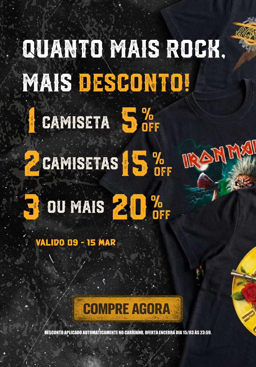 Alto padrão de qualidade, conforto e durabilidade. São vários tamanhos (do PP ao 4G) para você presentear o fã de Rock que você AMA!