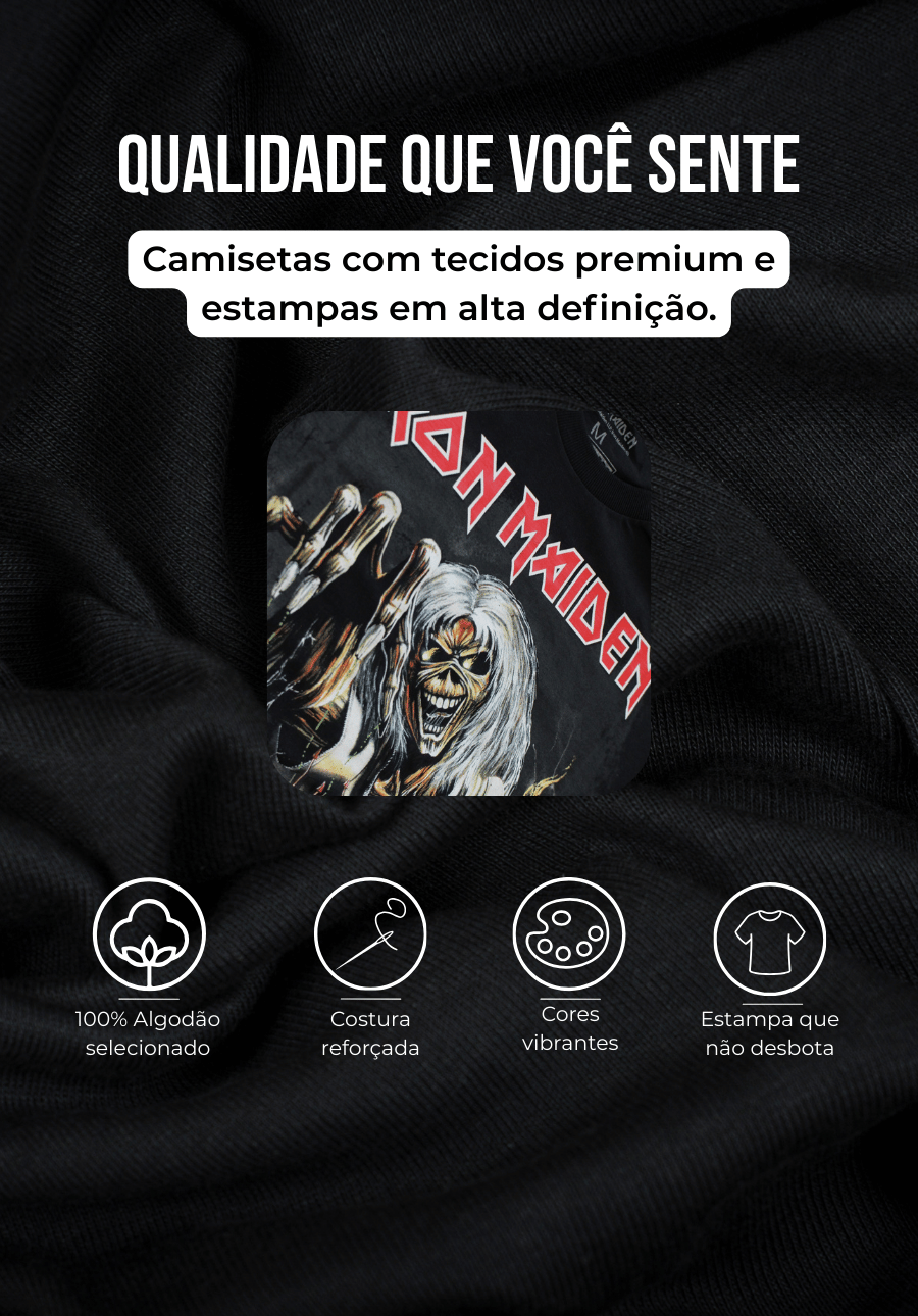 Alto padrão de qualidade, conforto e durabilidade. São vários tamanhos (do PP ao 4G) para você presentear o fã de Rock que você AMA!