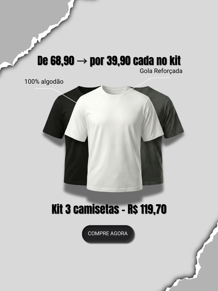Kit com 3 Camisetas Básicas Consulado do Rock
