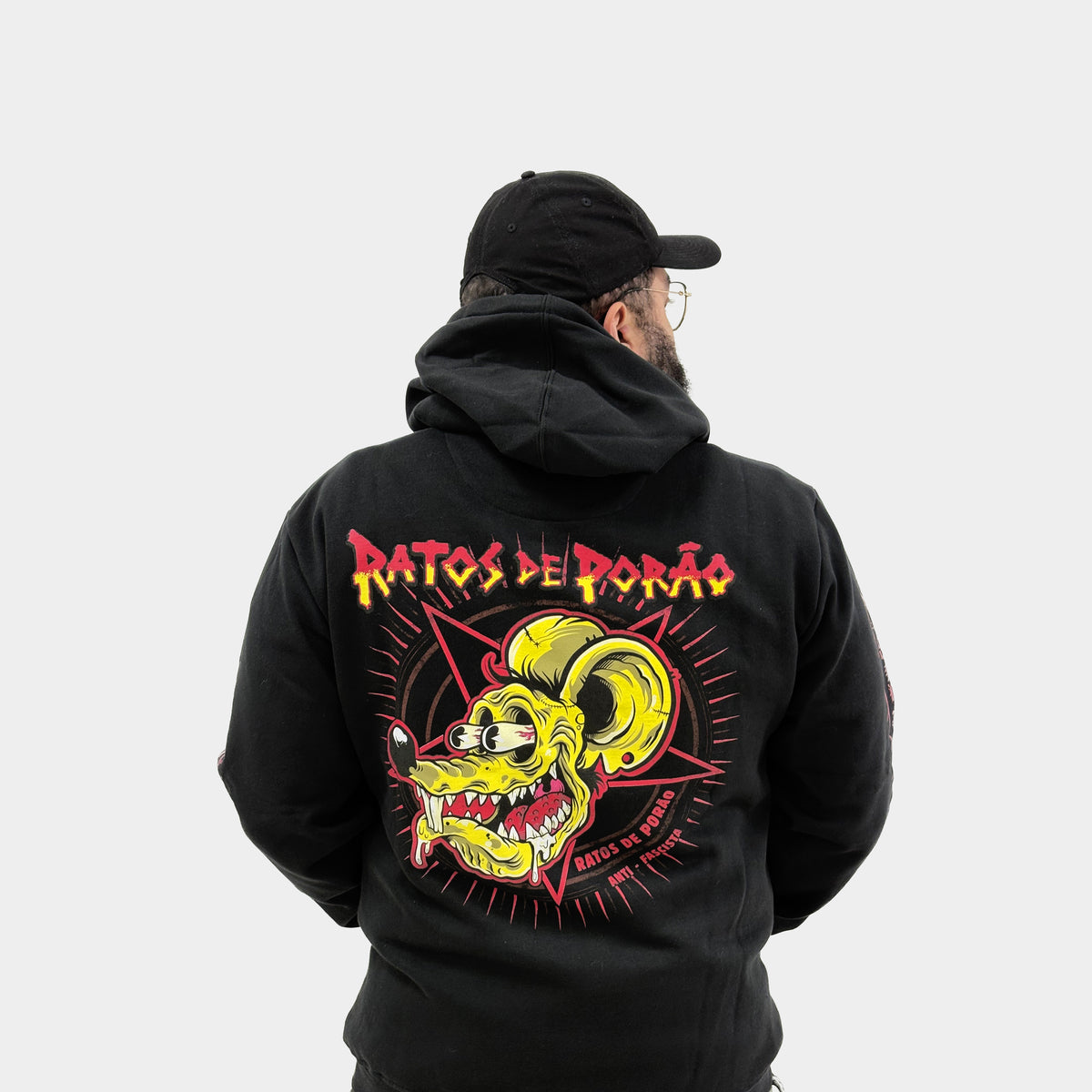 O moletom Sem Anistia traz uma estampa que reflete o posicionamento forte e contestador do Ratos de Porão, conhecido pela atitude direta e crítica presente em suas obras.