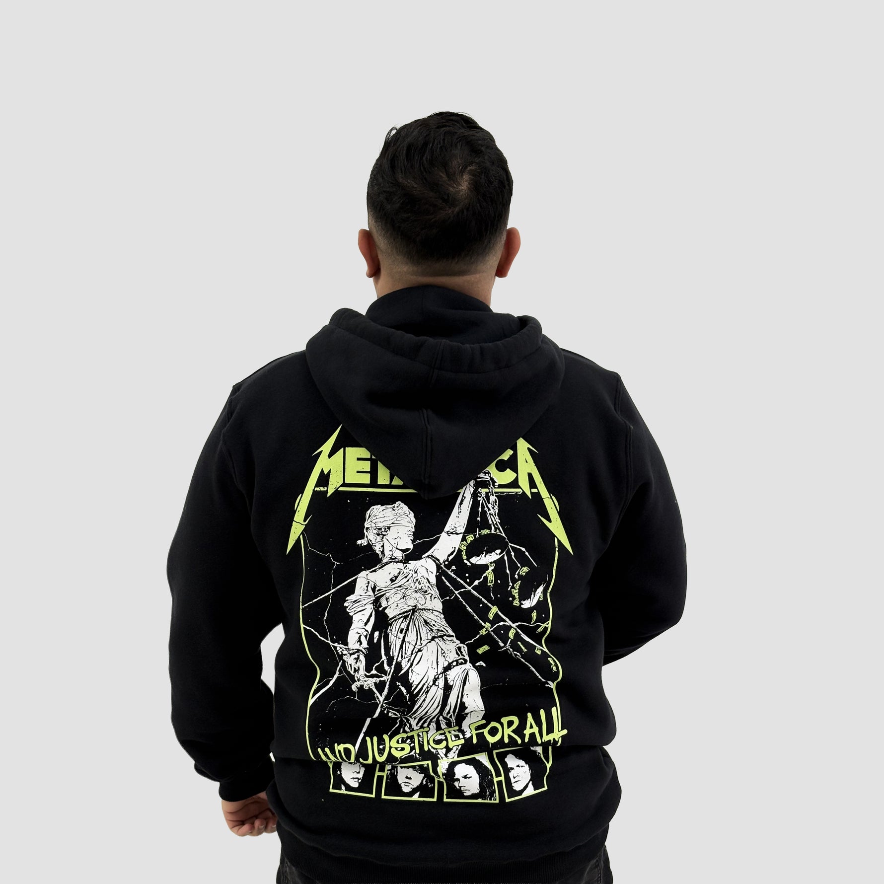 Com o logotipo clássico da banda na parte frontal e a icônica arte da estátua de Justiça despedaçada nas costas, esta peça é uma verdadeira homenagem ao quarto álbum de estúdio do Metallica, lançado em 1988.