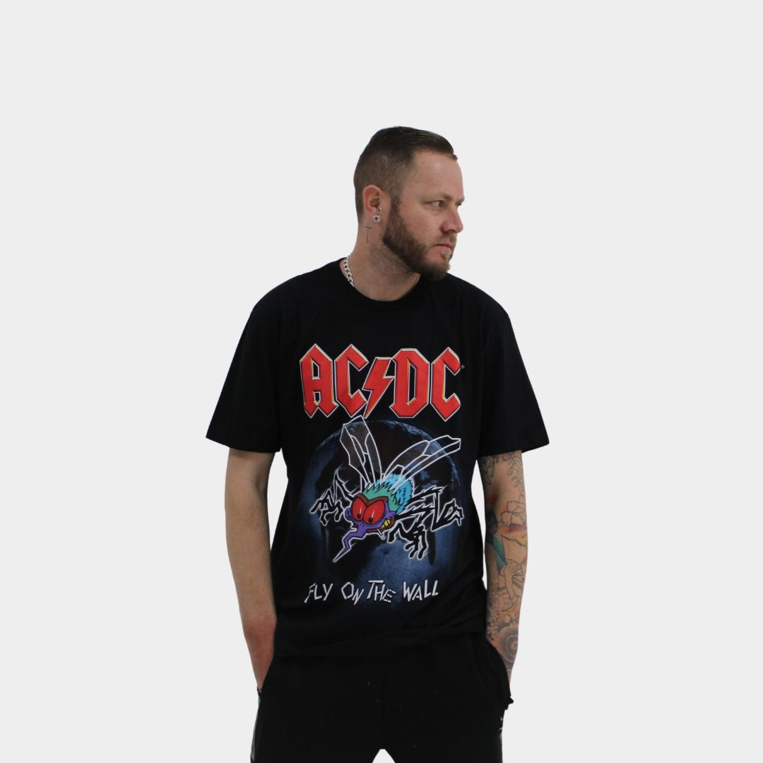 Celebre um dos álbuns mais emblemáticos do AC/DC com a Camiseta Oficial Fly on the Wall, disponível exclusivamente no Consulado do Rock. Esta peça licenciada traz a icônica arte do quinto álbum da era Brian Johnson, lançado em 1985, que consolidou o som cru e poderoso da maior banda de rock australiana.